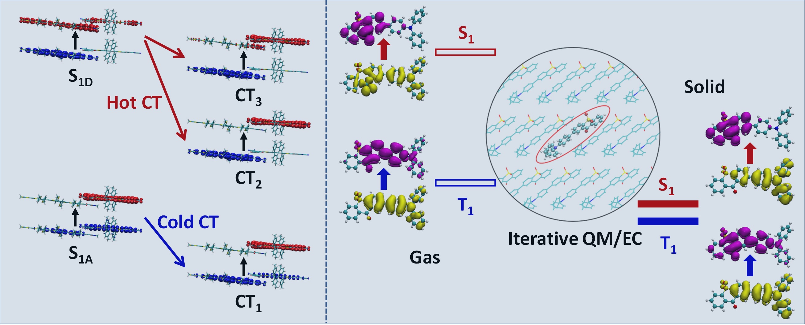 微观的分子电子结构性质是决定有机光电机制和性能的基础。本课题组研究内容之一是发展精确的电子结构计算方法,准确表征有机功能材料中分子能级、激发态结构和电子相互作用等微观分子性质。